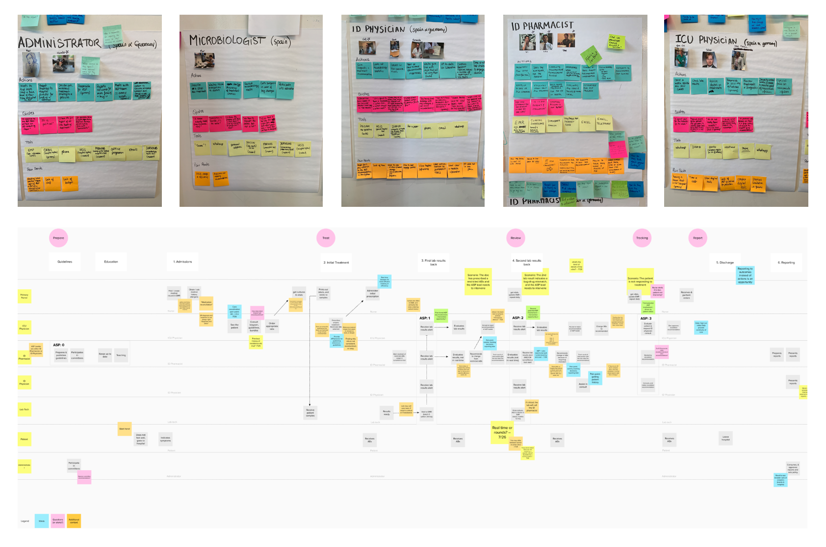 In order to synthesis our research we created user shrines for every user type where we would list their main actions to understand their responsibilities, quotes to bring the human voice and give life to our synthesis process, the tools they use and pain points to help identify design opportunities.